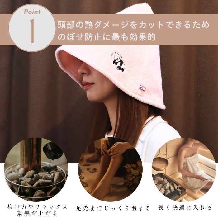 サウナハットを被って、快適な’ととのい’に導く<br /><br />