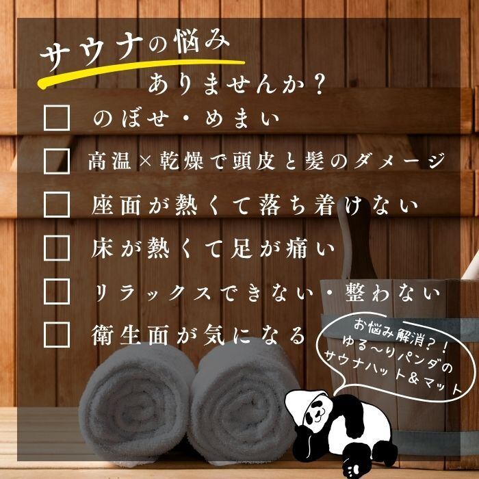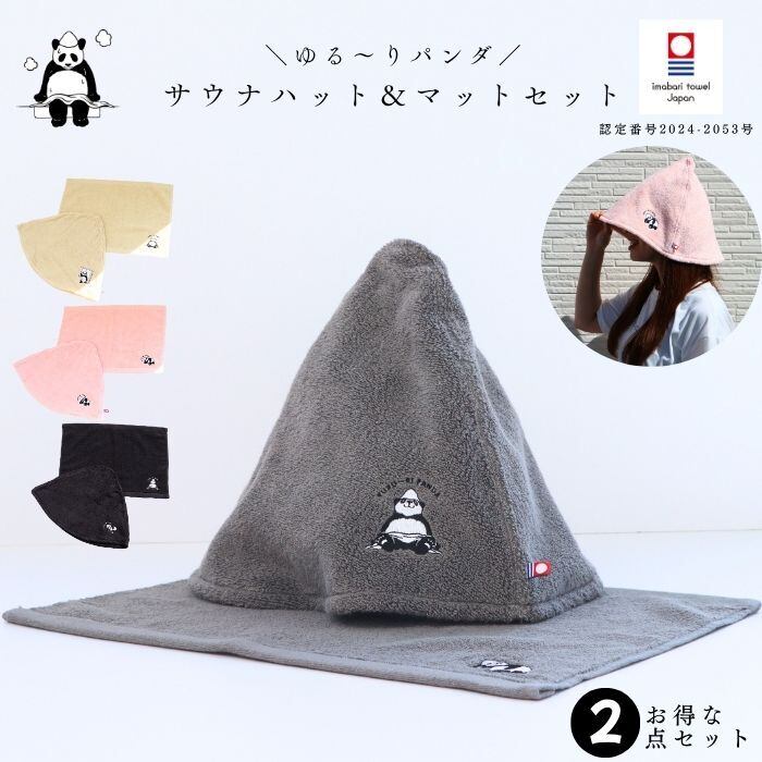サウナハット・マット セット ゆる~りパンダ サウナマット 1人用 洗える 選べる セット品 帽子 マット サウナー サウナグッズ 吸水性 大きめ パンダグッズ 日本製 深め 洗える 深くかぶれる おしゃれ 熱 遮断 髪 と お肌